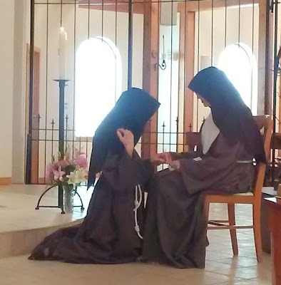 On Monday of Holy Week, our dear Sister Mary Christine passed into eternity at about 5 AM. Most of us were around her when the Divine Bridegroom came, but His actual moment of coming remains His secret. Sister went into His arms quietly and peacefully. Her funeral is tomorrow, Easter Tuesday. Please pray for the repose of her soul and for us all as we accompany her mortal remains to their final resting place and then take up the threads of our life to continue our own journey to the heavenly kingdom. Here is the link to her obituary, written by the Sister who was her main caregiver this past year. https://www.vincentfh.com/obituaries/sister-mary-pazidam/#!/Obituary
